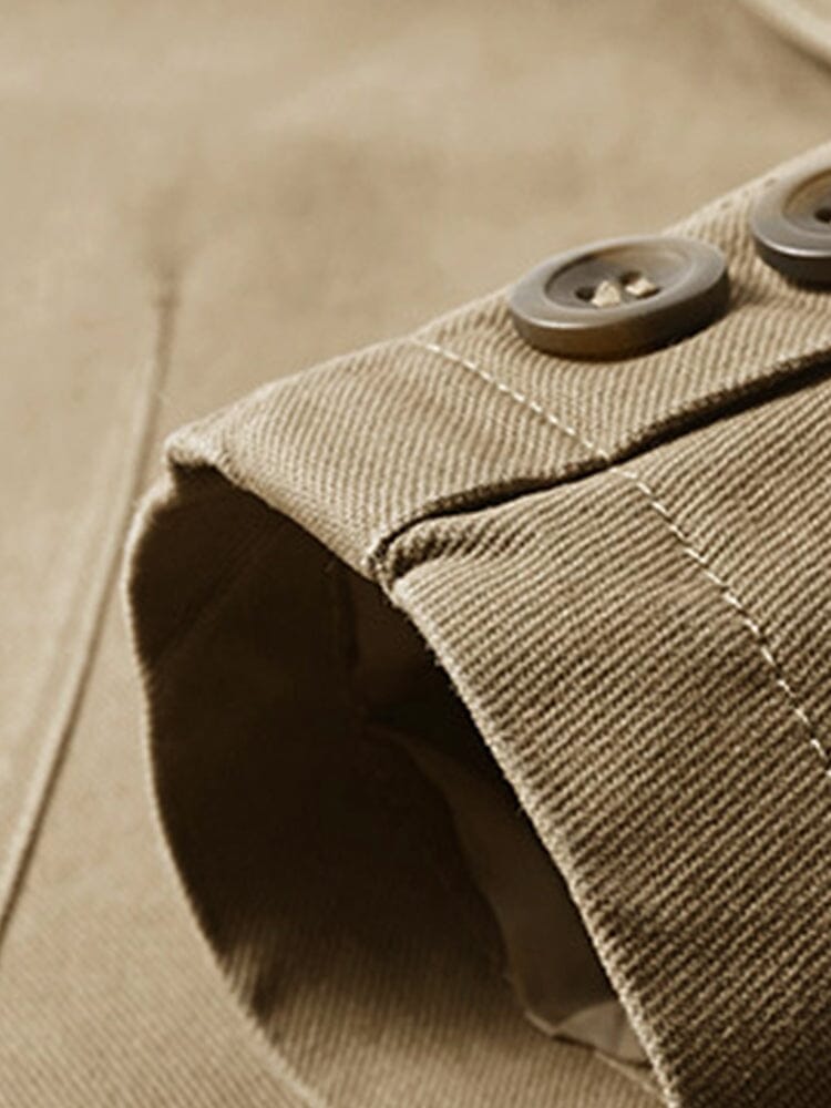 - Details: Button closure, two front pockets, one chest pocket