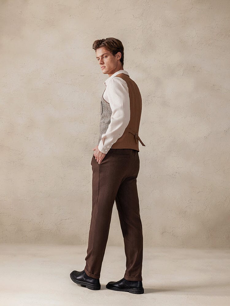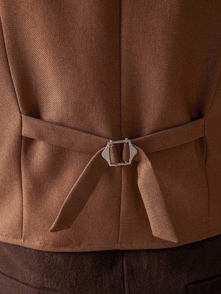 - Design: Plaid front and solid brown back splicing, v-neck design